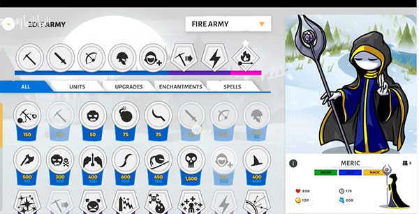 第十二关:最终对战,这时敌方用的是熔岩皮肤,十分强悍,前期两排剑士一排弓箭手,7个矿工发展经济(备上淘金热*3)后期养两巨人开路,两排弓箭手掩护,四排剑士拆雕像(备好剑士狂怒*2,一个拆雕像,一个防援兵),敌方雕像没血后会变出一个巨人(银甲大帝),这时赶紧撤退(防守模式),不要跟他硬刚,因为他伤害非常高。这时拿出对付巨人的套路,不过千万不要皮。打败他之后就会按照剧情发展,跟着剧情走就好了。