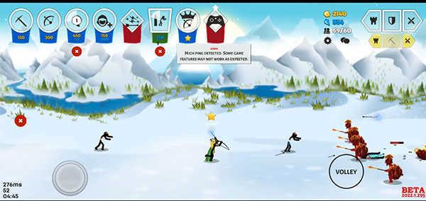 第九关:巨人关卡,先养两名剑士,操控其中一名跟巨人绕走位,另外一名备用,经济上来后全养弓箭手