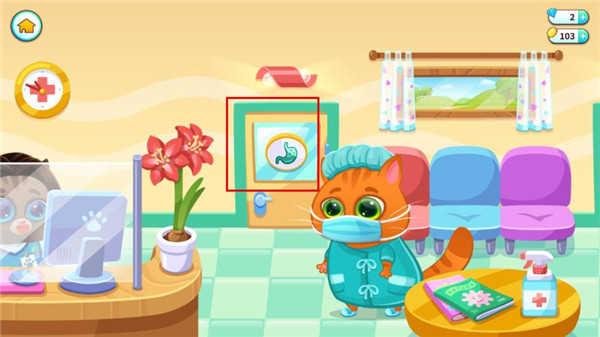 1、bubu生病的时候,会一直弹出肚子疼的标志,点击即可前往诊所。