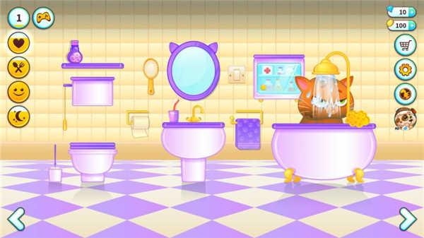 3、点击浴室,给脏脏的bubu洗个澡。还能擦出透明的泡泡浴。