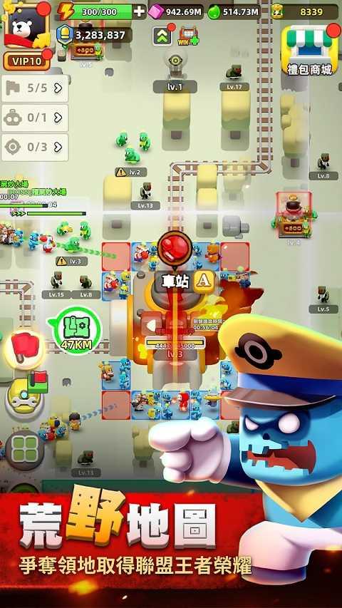 荒野地图的缩圈赛季,掠夺、俘虏、野外行军、领地争夺,加入联盟进行大规模的野外团战吧!地图上也有资源矿区、零星的殭尸和成群的丧尸军团,更能透过雷达扫瞄找出隐藏的各种资源宝藏。大地图分为A/B/C/S区域,随著时间的流逝会逐步往中心开放与推进,地图上的联盟气球、车站、桥樑和各种关隘与要塞都是必须抢佔的重要据点,而矗立在地图中央就是所有玩家都想征服的统治中心。