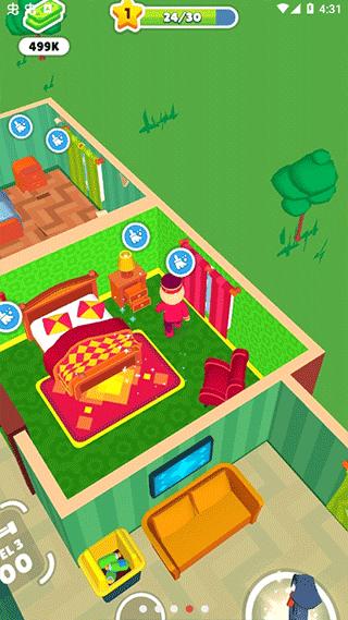 3、安排好房间给客人,他们住完后,需要及时清理打扫,才可以继续接待客人,移动小人靠近待清理的地方,就可以自动清理了。