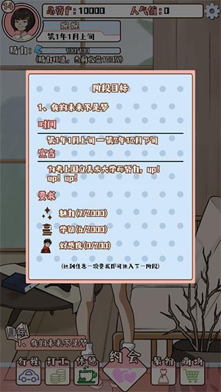下载进入晚学模拟器游戏,可以查看自己的基本情况