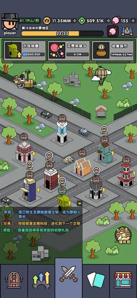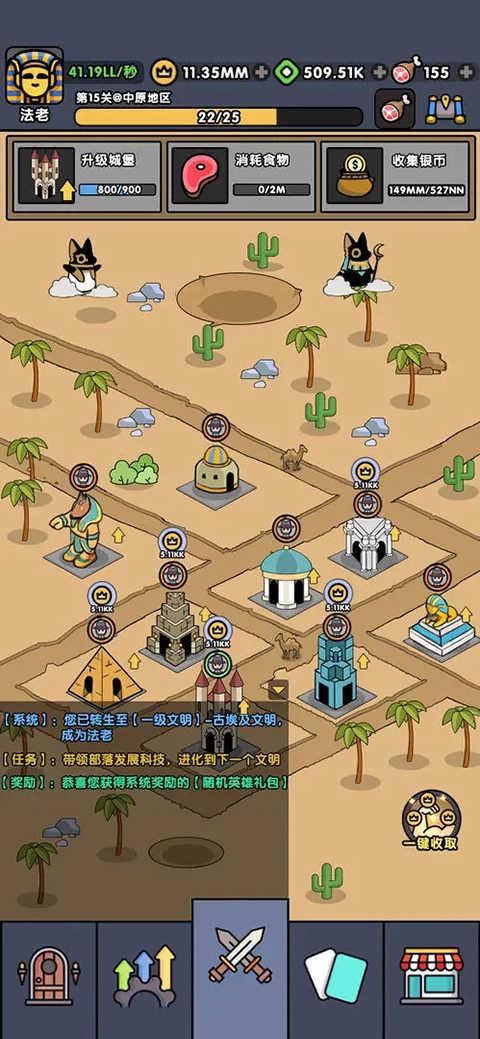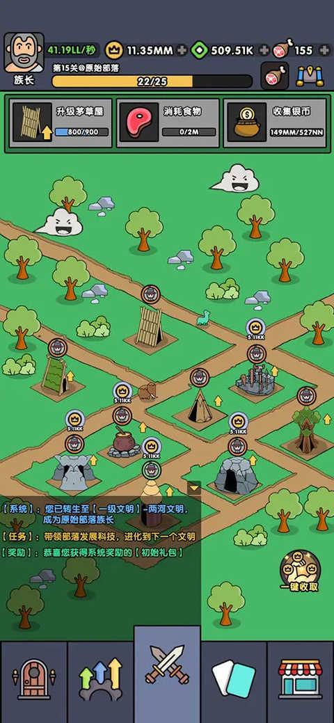 神级文明进化系统是一款结合了养成、放置和模拟要素的经营策略游戏。玩家在游戏中扮演一位部落族长,初始处于一级文明阶段。游戏的目标是通过囤积资源和发展科技,带领部落从初级文明逐步进化到更高级的文明阶段,最终达到神级文明。游戏中的玩法内容十分的丰富,玩家需要通过完成主线剧情任务来发展部落,壮大队伍,并提高自己的文明程度。并且在这个过程中,玩家可以招募历史英雄作为伙伴,帮助完成任务和战斗。游戏的战斗模式为纯数值战斗,采用回合制自动战斗系统,让玩家的游戏体验更加的精彩十足。感兴趣的快来本站下载体验吧。