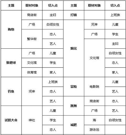2、首先是是主题为:购物、打猎、烟花、躲避球、冒险。跳舞、减肥、试胆大会、钓鱼的的