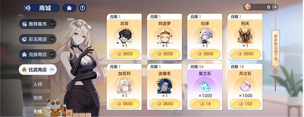 1、星之石可以在人榜商店中兑换指定五星珍奇神使。