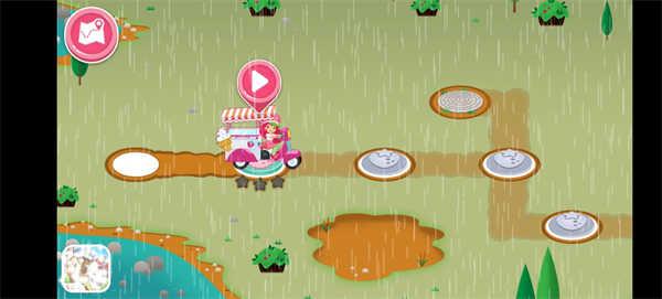 1、下载进入草莓甜心冰激凌岛游戏,游戏提供了多个美食区域,从热带丛林到雪山的所有美食区域等你体验;