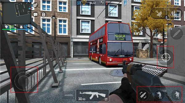 左侧遥感,右侧射击,瞄准、换弹、投雷、武器更换等一系列功能及操作中规中矩,适合绝大多数人的习惯,在一局有限的时间限定条件下,尽可能的击杀敌对势力获得积分,死后可以从基地复活,可与队友协同作战。