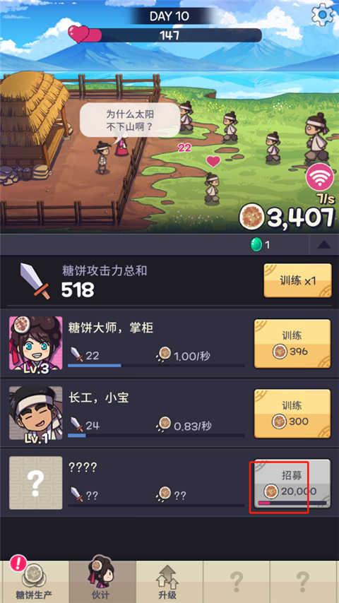 6、当糖饼达到一定数量时,解锁招募更多店员的功能。