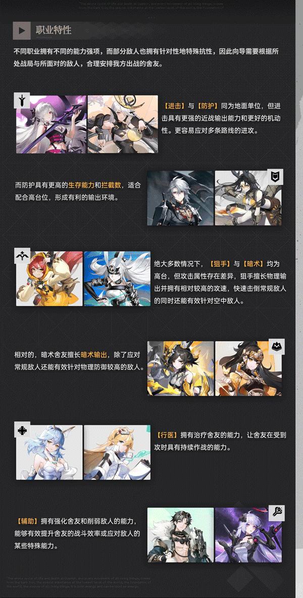 1、环行旅舍目前有6大职业:【进击】【防护】【狙手】【暗术】【行医】【辅助】