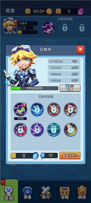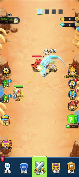 1、下载进入最强召唤师游戏,通过挑战关卡可获得强大的英雄;