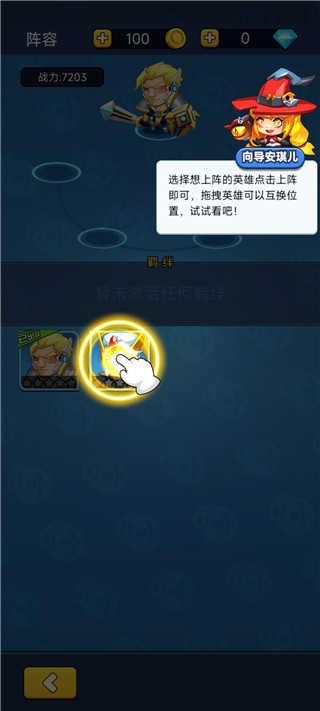 3、选择想上阵的英雄点击上阵即可,并且拖拽英雄可以进行互换位置;