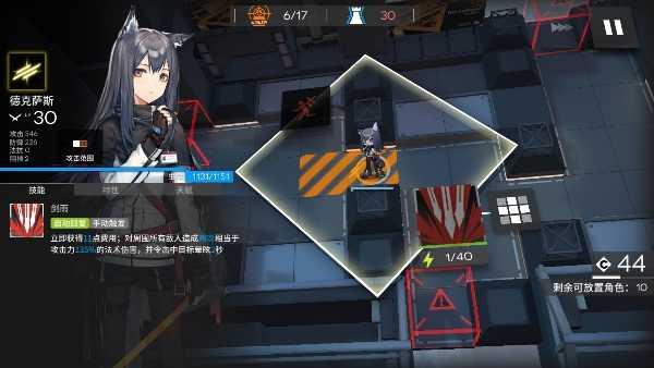 3、游戏任务是守护蓝色框中的还未苏醒的博士,你需要部署干员来稳固阵线,界面上方分别显示的是敌方被杀的数量以及敌方的总数,点击右上角的播放按钮可暂停游戏,点击1X可加速游戏。