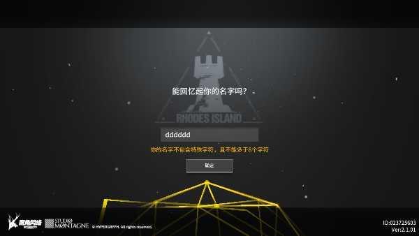 1、打开在本站下载安装的最新版游戏,注册并登录账号,给自己起一个游戏名字,点击确定。