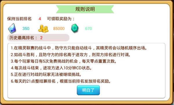 1、精灵联赛卡时间去打,我基本上就是上午打到前80去,晚上八点再去拼一波,保持在80以内,可以获得140的钻石和400积分,还是挺不错的。