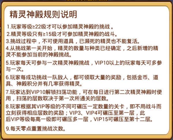2、精灵神殿最费时间(对于低v和平民),但是奖励却异常丰富,获得大量金钱(我每次可以得一百八十万左右),还出过几次号角。关于怎么打就要看个人了,我基本上是消耗宠加一击必杀,重点培养几只主宠。金币多了就去十连抽,可以获得许多资源。