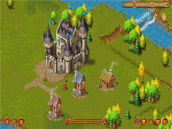 2、进入一个场景游戏后,你就会看到一个大的城堡,几个小房子、伐木小屋等。小房子提供人口,只有有了人才能干活嘛。