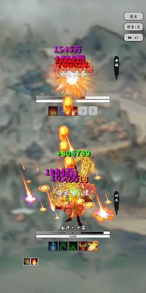 有了这6个技能就可以去打怪了,每打完一场就抽天赋和技能。每次打不过怪了,就先抽技能再打,打不过点一下修炼。每次打不过就是这样重复。换一下技能的上场,抽技能升级,最后迫不得已才是点修练点。