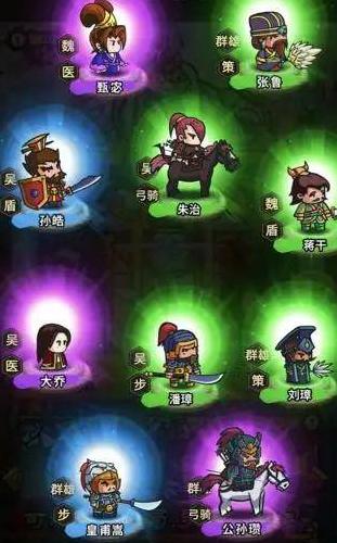 武将分为三种品质,分别是:绿色、蓝色、紫色。绿色武将没有任何培养的价值,平民玩家初期可以用作过渡;蓝色武将是平民玩家前期的主要战力,建议优先重点培养一些蓝色的盾兵!紫色武将是玩家后期主要的战斗力,但不同的紫将能力也有着千差万别,强力的紫将经常能够独当一面,而某些鸡肋的紫将还不如蓝将。