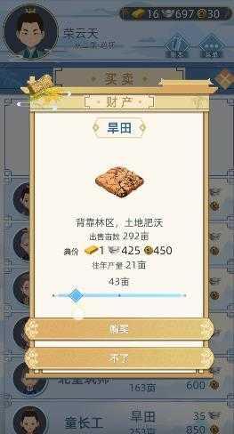 1、先买个最贵的水田,然后剩余的钱都买最便宜的,然后退回自己的田地界面去卖,
