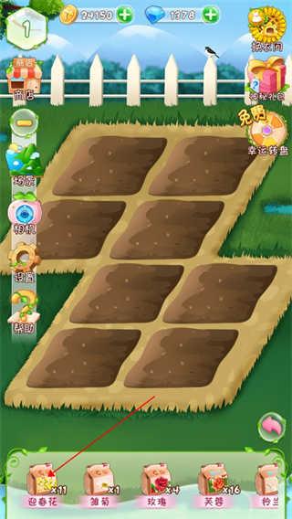 2、在花园的界面下方,有一个按钮标着“播种”,点击这个按钮可以进入种植植物的界面。