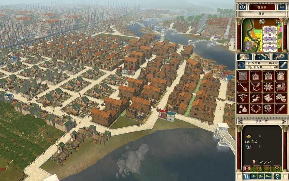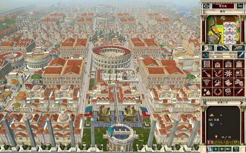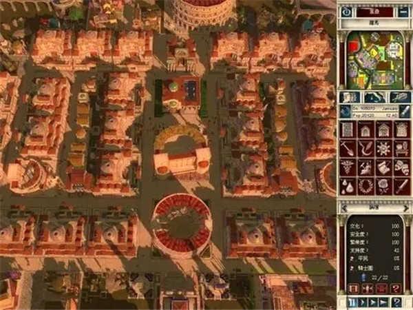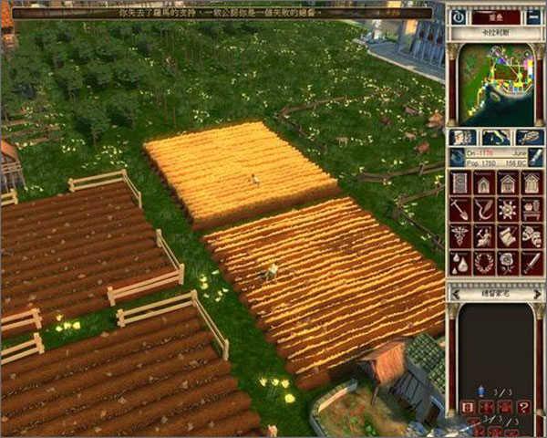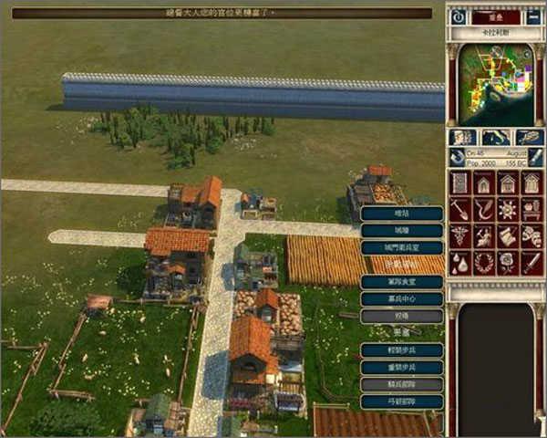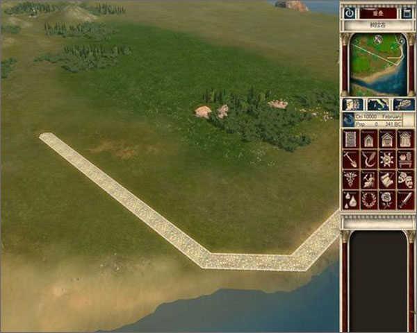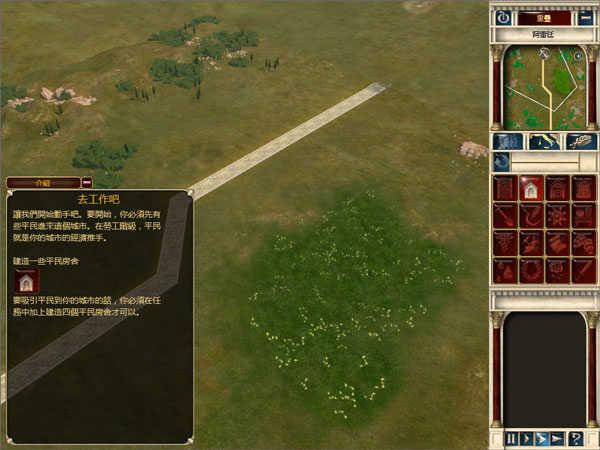 每个关卡一开始,我们伟大的上司凯撒大帝和元老院的各位叔叔伯伯只会在一片荒地上铺上一条小小的石砖路。而我们的任务就是在这片只有石砖和杂草的荒原上打造出一座繁荣的市镇,凯撒负责出口,玩家负责把万丈高楼平地起这句话实现在游戏中。