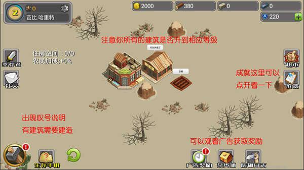 点开左下角的建造按钮就可以早各种建筑了,例如帐篷可以为幸存者提供住处并产出金币,农田可以种植作物,木材厂可以产出木材,招募中心可以招募幸存者等等。