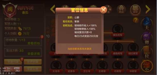 军团占领都城之后即可激活对应体系的官职,担任官员虽不能直接获取铜钱,但官员会提升大量封地铜钱产出量。
