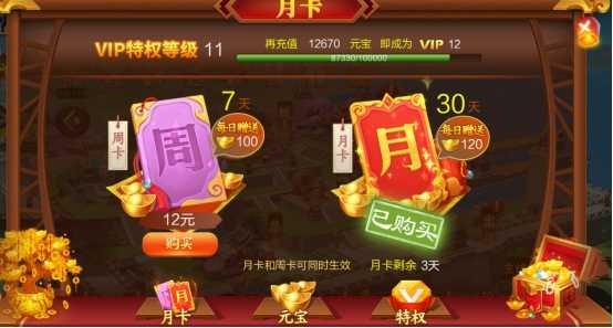 6、游戏充值,这是最快获得最多元宝的方式。周卡、月卡不仅有每天返利。其他奖励额度的充值,首次充值元宝,可赠额外元宝,十分划算。