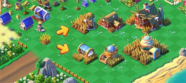成熟的麦田可以收获麦子,继续合成可能变成小麦磨坊或者鸡蛋孵化场。小麦磨坊可以采集出优质小麦,合成优质小麦就可以解锁面包工坊系列来制作各种面包了。合成到大型面包店还能解锁新角色艾米莉亚。