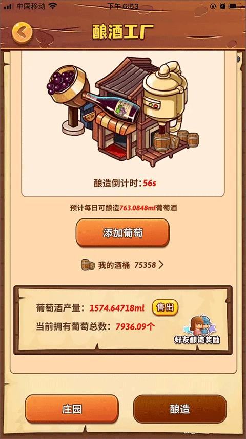 PS: 酒桶这个东西初始化送80000个 在酿造葡萄那刻开始就在消耗 ,这个也不用多说没有就直接补充 每天还可以免费看三个广告补充300个酒桶。