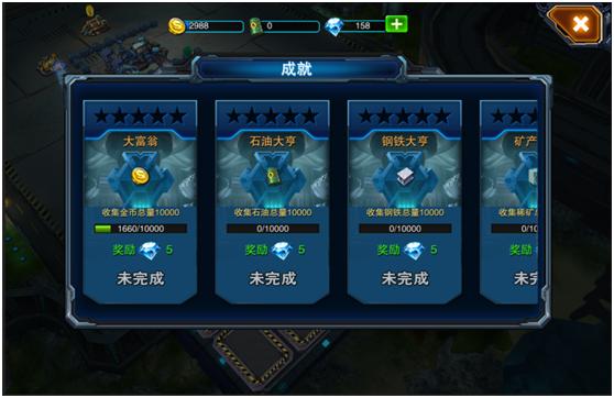 每项成就分成三个星级,当玩家达到相应星级要求的条件时,便达成该星级成就。
