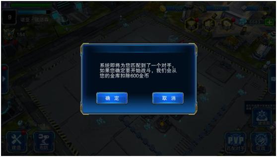 2、 系统弹出一个对话框,提示系统会匹配一个实力相当的对手,每匹配一次均需要600金币