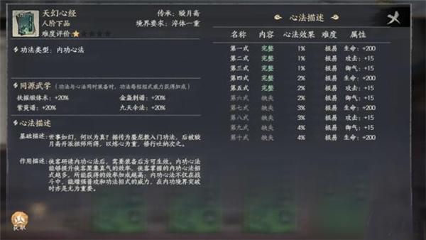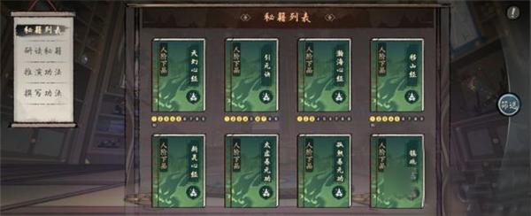 1、秘籍列表存放着宗门获得的所有功法,在这里也能看到获得的功法的品阶与名称,点击的话还可以看到该秘籍更细节的内容。