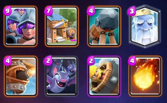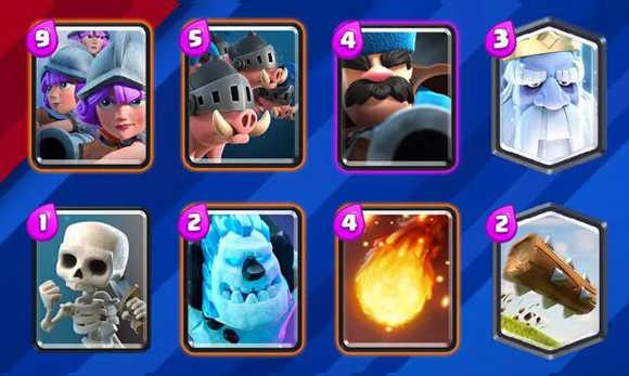 2、推荐原因:圣水消耗量少,有攻有防,如果对面选择的是高耗率卡牌的话,完全可以打他一个措手不及,并且卡牌容易集齐。缺点是,容易被女武神这种英雄压制,并且生命力低。
