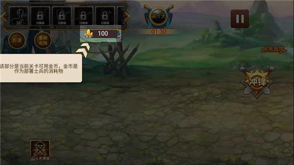 2、该部分是当前关卡数以及可用的部署时间,当时间耗尽时,我方部队会对敌方发起进攻;