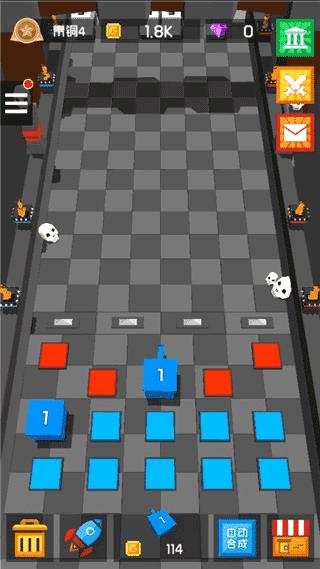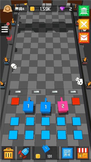 每个白块的顶部都有相应数字信息对应的是白块的血量,相同的炮塔可以融合产生高等级的炮塔获得更高的攻击力;