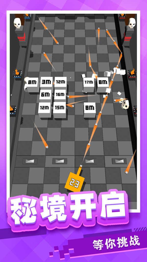 每击杀消灭一个方块将会获得相对应的奖励,游戏采用无尽模式,玩家可以自由挑战,无限获得奖励;