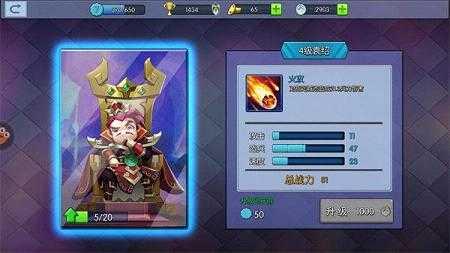 a. 主公可配置4个主动技能和生存被动技能,在主公技页面消耗谋略点数点亮升级技能,在配置页可针对自动施法的技能调整顺序。