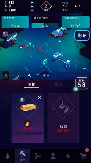 4、通过提炼的高品质金属进行研究,能拥有更多科技,进而提升采矿能力。