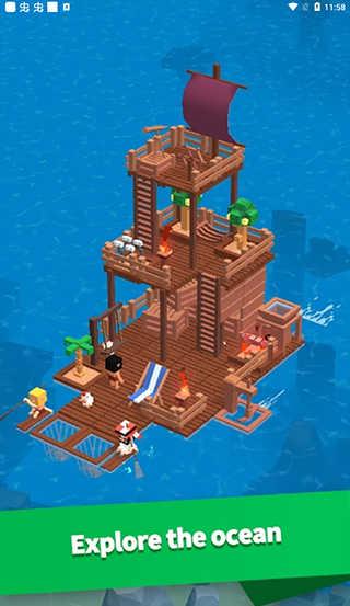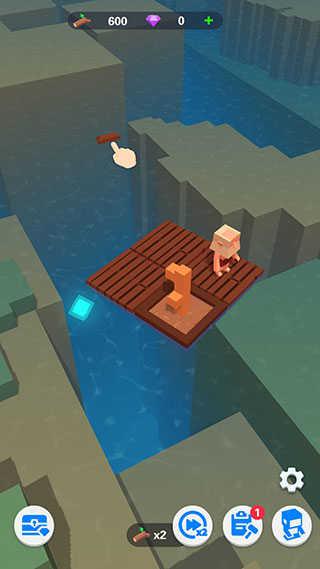2、通过游泳收集木材、漂流瓶、宝箱等神秘建筑材料。