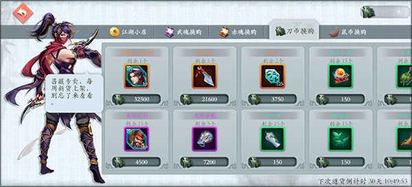刀币商店可以兑换到6星侠客和侠客配套的6星武器,建议首选兑换,剩下的是各种经脉材料,当侠客换完后可以按需求选择兑换。