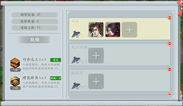 侠客入驻后,生活技能对所入驻的建筑生效。