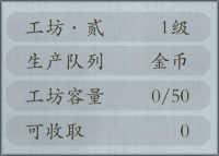 家园的主要产出建筑,最多可以建造4个工坊,建造数量随鼓楼等级解锁。工坊可以制造出侠客经验药、金币及龙玉,即使离线也可以生产,是游戏重要的经济来源。