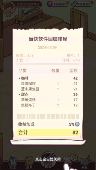 幸福甜点咖啡店是一款模拟经营养成游戏,在游戏中玩家将经营一家甜品咖啡店,玩家需要来制定各种经营计划来负责管理店铺的各种细节,并通过不断尝试新的配方和口味组合,来打造出独特的招牌甜品和咖啡,吸引更多的顾客前来品尝。此外,游戏的操作简单易上手,玩家随时随地就能来游玩体验,快来加入幸福甜品咖啡店,展开属于你的甜蜜经营之旅吧!
