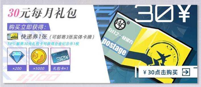 2、也可以购买礼包或者氪金项目得到邮寄劵,价格为30元
