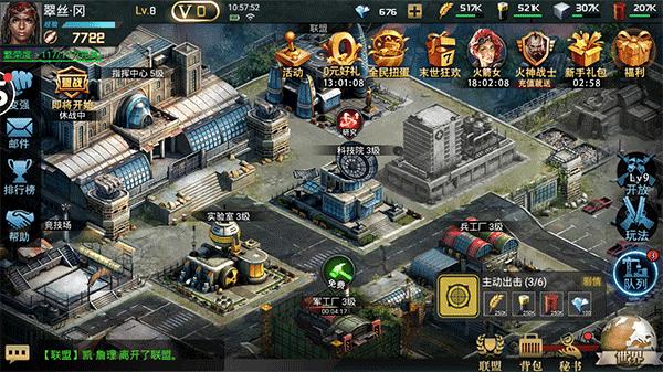 在游戏中,玩家可以选择加入不同的玩家联盟。玩家可以在大地图对其他玩家进行资源掠夺,充分上演刺激的“狼与羊”游戏,带来紧张刺激的个人pk体验,除此之外,玩家还将与同联盟的小伙伴们,合作互助,攻城略地,征服天下,体验丰富的团队荣耀。联盟还可以建造联盟建筑,将小伙伴聚集起来,共同应对危险挑战。还可以邀请盟友进入训练营,组队探索废土世界。每周还会开放盟战,集结服务器最强的六个联盟,进入战场争夺资源,通过占领六座营地,为整个联盟获取利益,每周日开放中央矿坑供六个联盟进行最终争夺战。