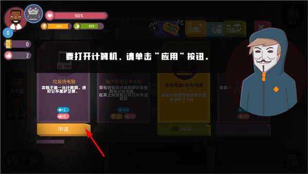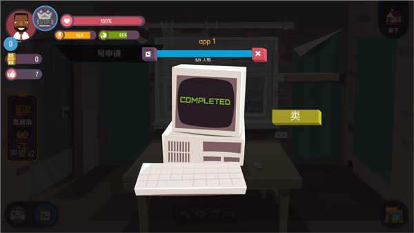 4、接下来玩家点击电脑开始写申请程序,写完之后把它卖出去即可获得第一笔资金;