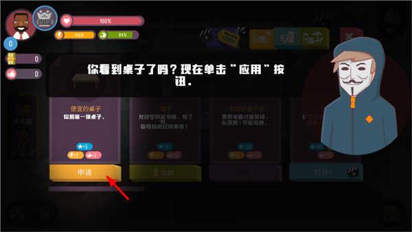 2、根据指示打开商店,购买便宜的桌子,这样房间里就有桌子;