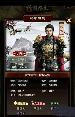 11、关于势力:所有门客的属性全部加起来,再算上红颜系统里加成和子嗣的属性(所有傻儿子和傻女儿的联姻势力也算,所以要优生优育)